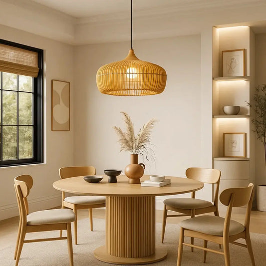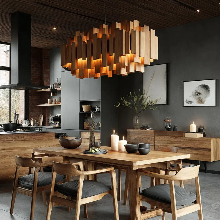 Pour une ambiance chaleureuse et authentique, optez pour un luminaire salle à manger bois. Le mariage du bois et de la lumière crée une atmosphère douce et conviviale, parfaite pour les repas en famille.