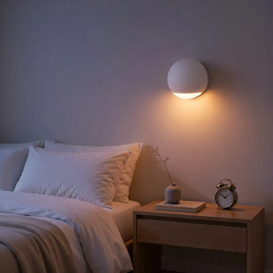 Bedroom: replaces the bedside lamp to free up the nightstand and diffuse a muted light.